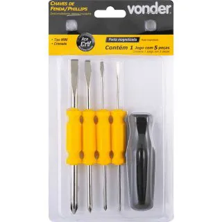 JOGO DE CHAVES DE FENDA E PHILLIPS MINI COM 5 PEÇAS VONDER – 3070500000